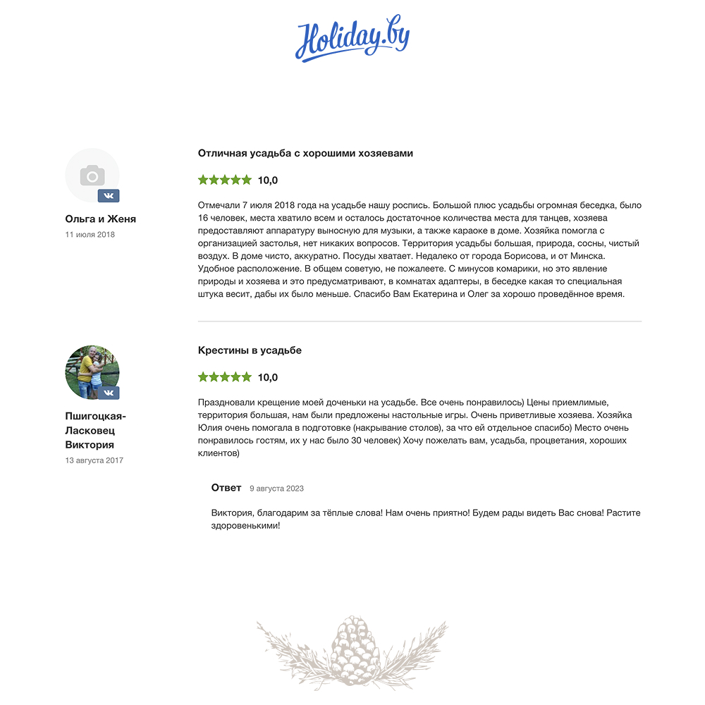 Отдых в сельской усадьбе стал одним из приоритетных направлений отдыха в Беларуси. Ведь именно в деревне можно насладиться действительно чистым воздухом, красотой живописной белорусской природы и отдохнуть от городской суеты и спешки, будь то семейный отдых или отдых в дружной компании друзей.